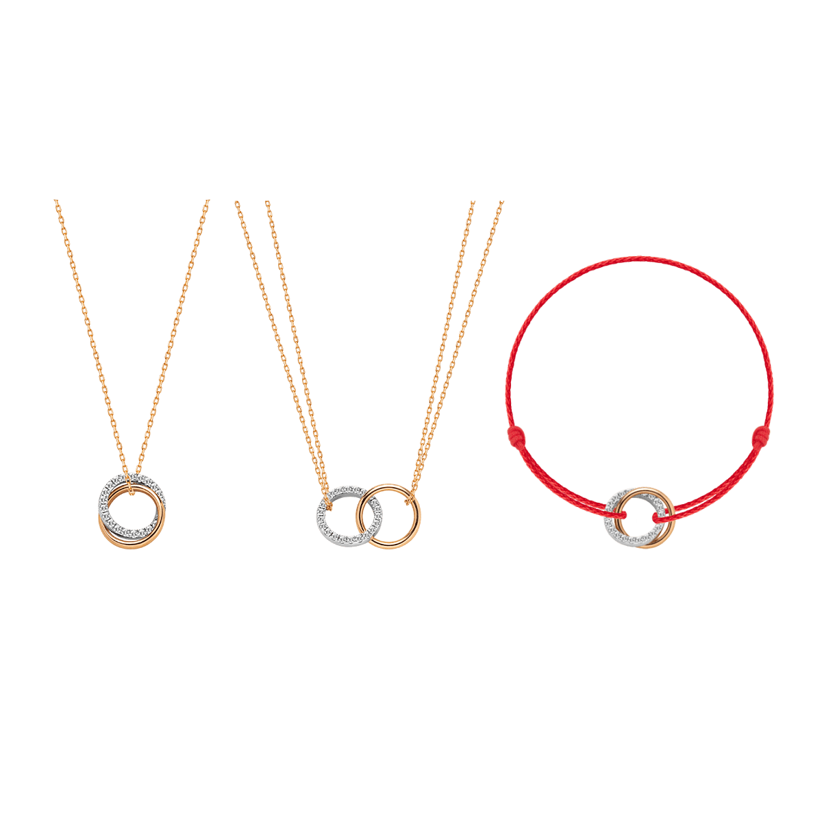 9K Rose Gold Lab-Grown Diamond Dual Loop 3-in-1 Red String Bracelet Necklace